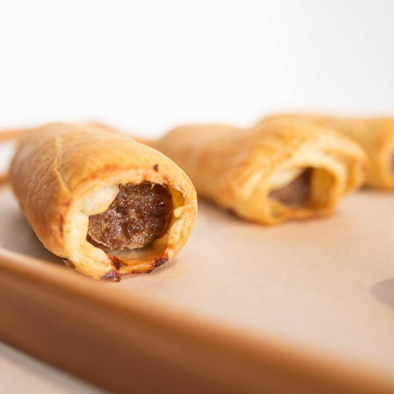 Mini sized sausage rolls are another great option for a savory appetizer. Each platter provides approximately 32 servings.