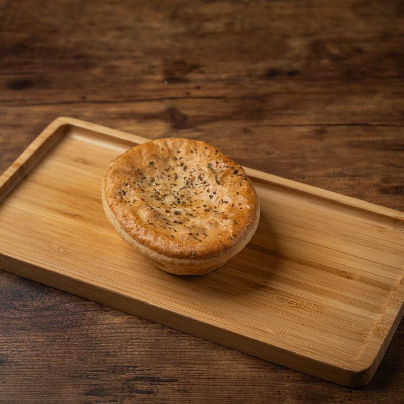 A flaky pastry filled with a hearty filling made of chicken, potato, carrots and peas.